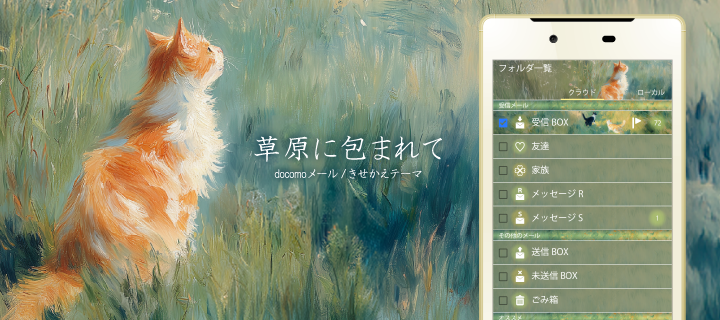 草原を歩く猫たちの穏やかなひとときのきせかえテーマ。