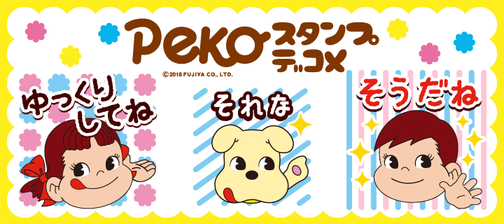 ペコちゃんたちが楽しく会話を盛り上げる♪普段使いにおすすめのスタンプデコメです★