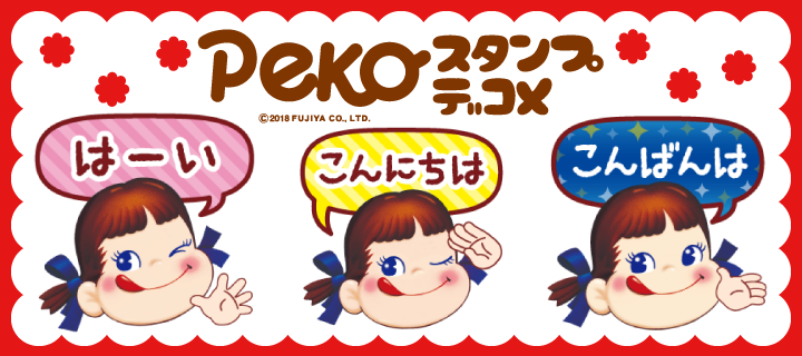 「ペコちゃん」のメールでよく使うあいさつの言葉を集めたスタンプデコメが登場♪
