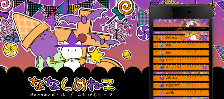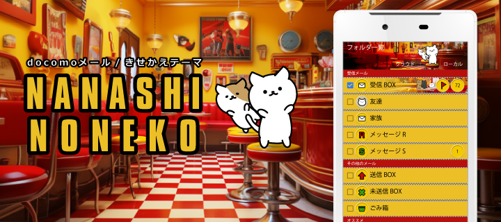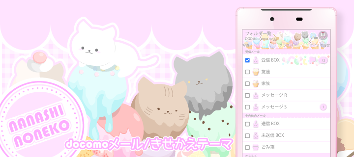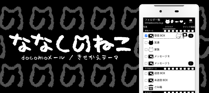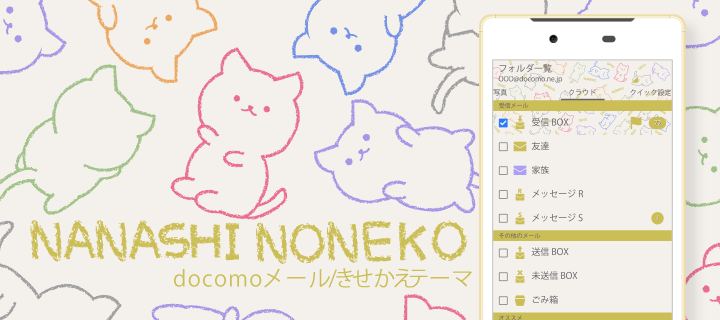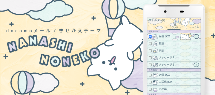 ほのぼの、まったり、シュールな可愛いキャラクター「ななしのねこ」のドコモメールきせかえです!