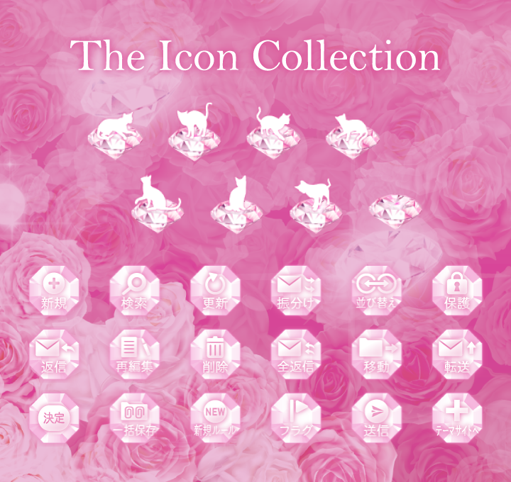 一面の薔薇がキレイ!なかよしのネコたちがのんびり宝石の上で遊んでいるよ♪