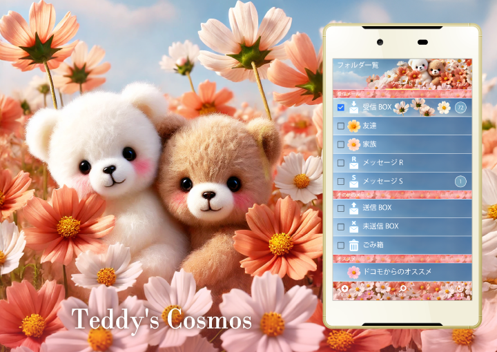 色とりどりの秋桜に包まれて、テディベアたちが過ごすやさしいひととき。