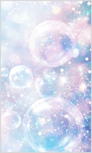 きらめくパステルの泡が舞う、幻想的でやさしい世界。